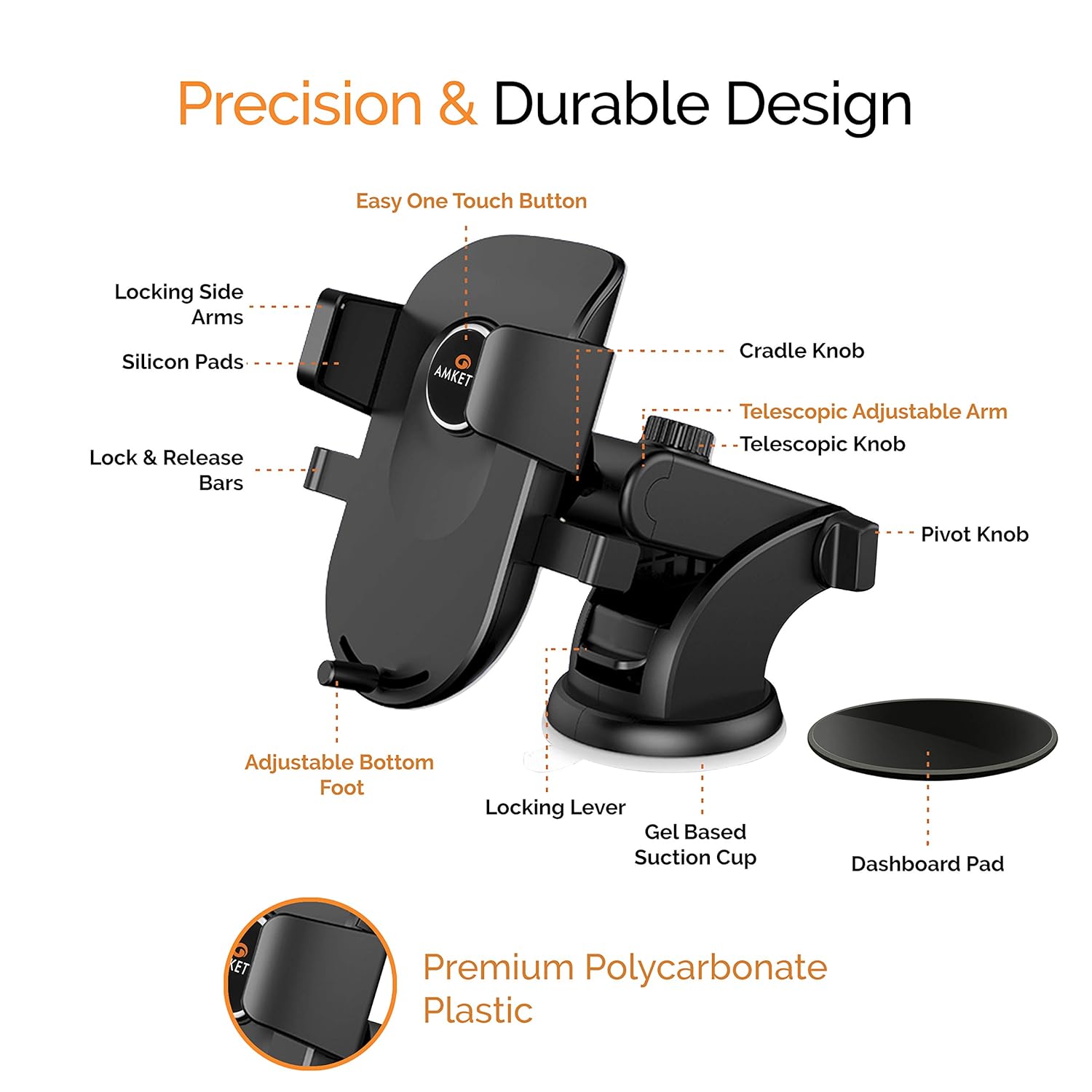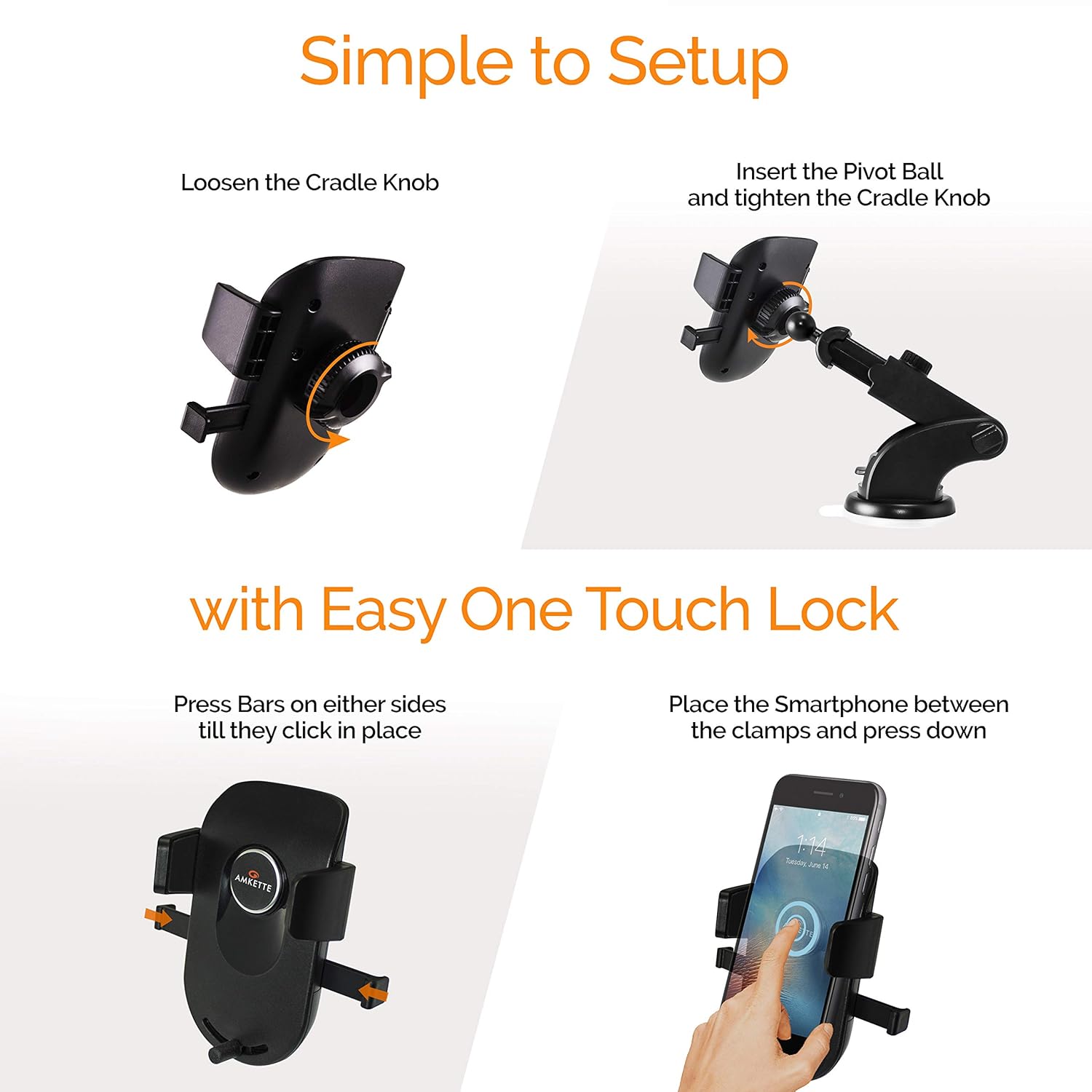 Compatibility: The totally redesigned bottom part makes sure that there is almost no obstacle with your mobile's bottom. This car phone holder has easy one touch function that gives a safe, dynamic and highly practical solution. Just fix it with the one touch locking feature and you are all set to drive.