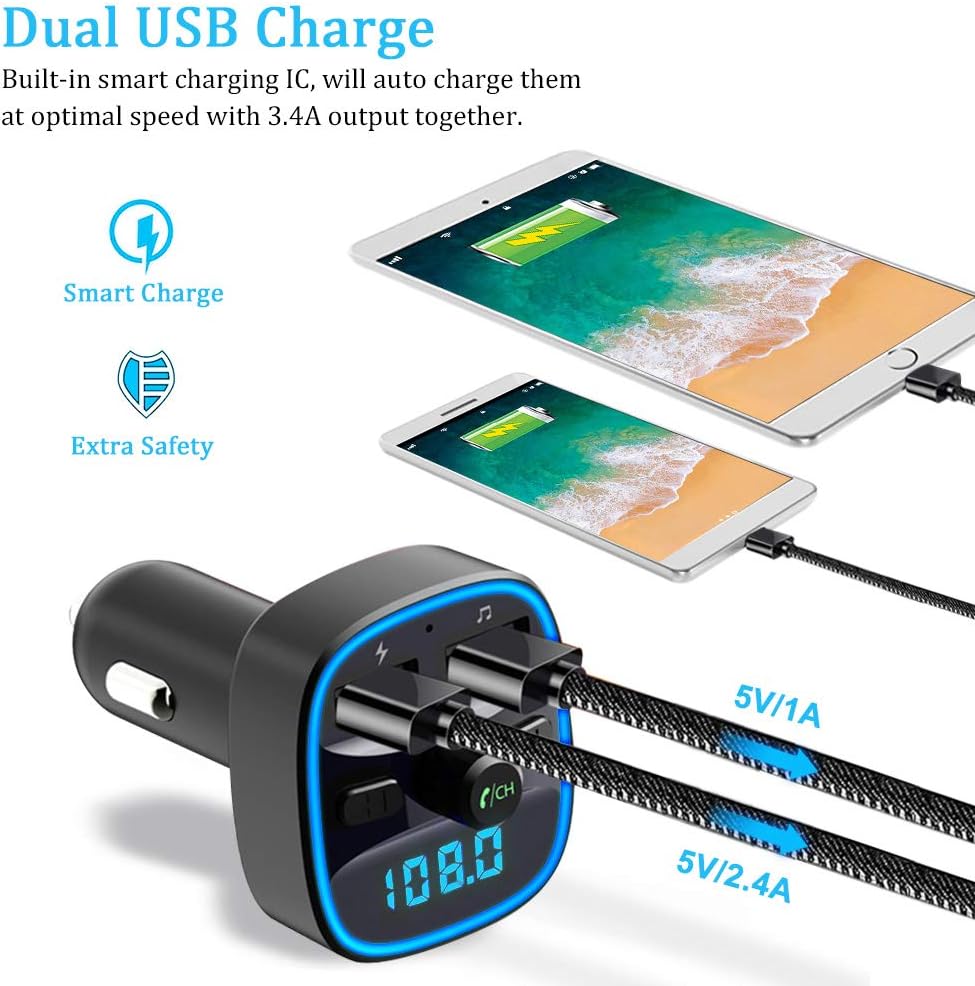 The FM transmitter will display your car/vehicle's voltage when plugged into the cigarette lighter. Keep your eye on the car battery health at all times to avoid problems when driving. With the circle of latest blue back light around this car charger, it will greatly simplify your operation for safer and high security driving.
